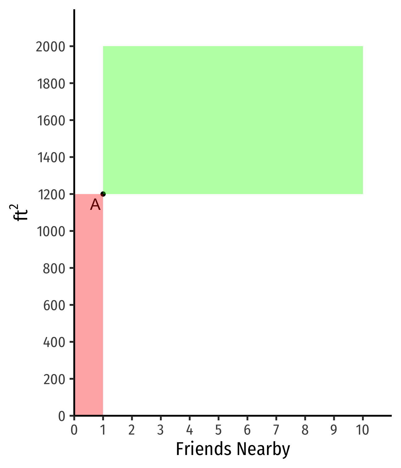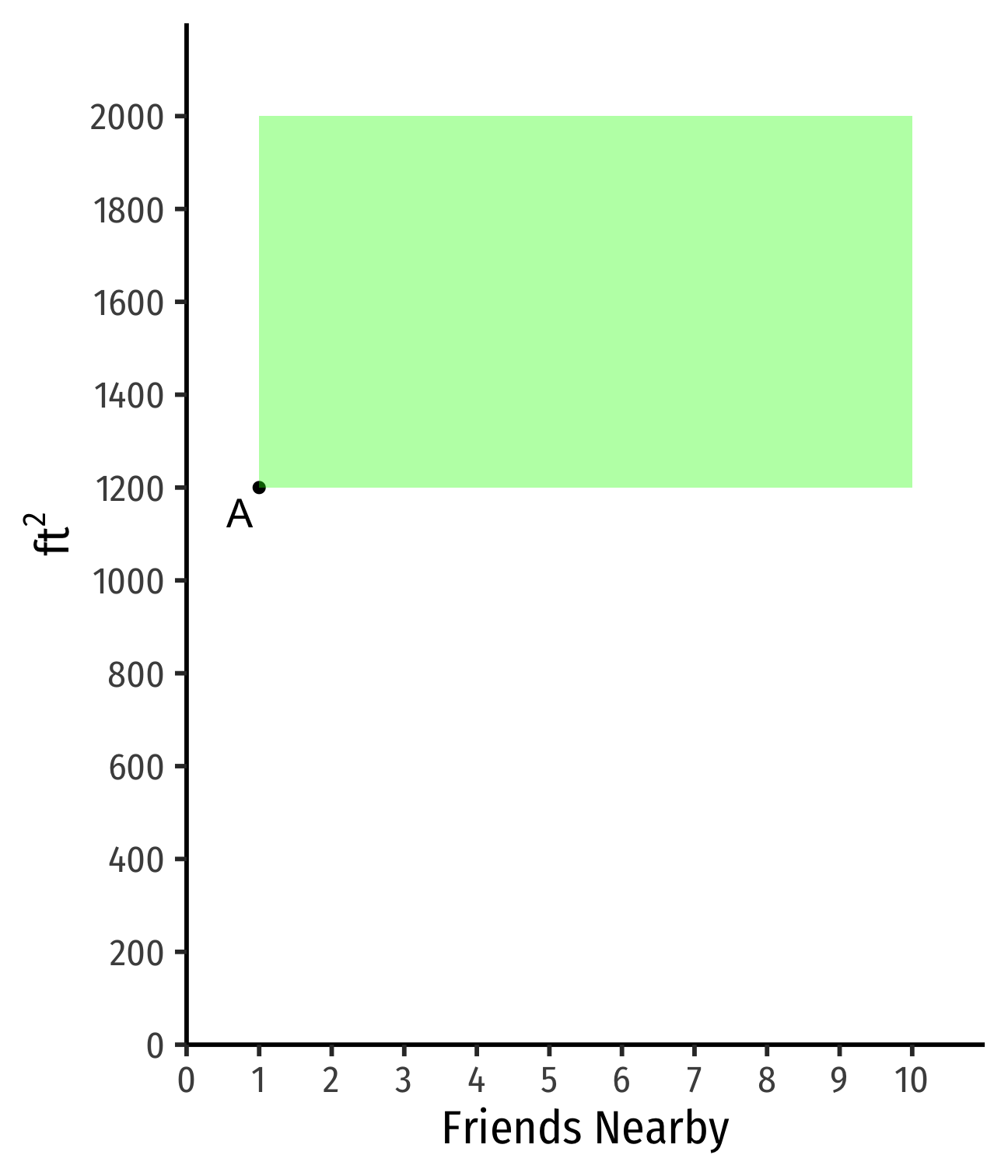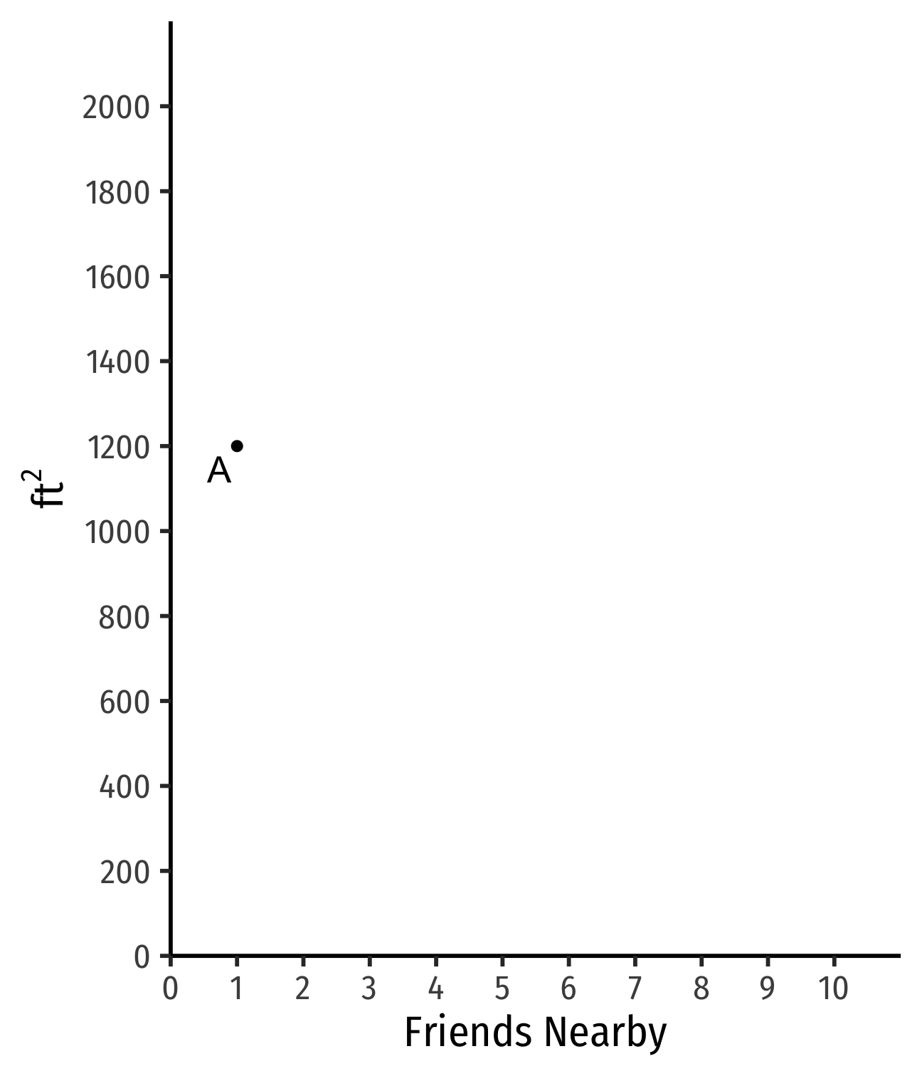 If I find another apt with 1 fewer friend nearby, how many more ft2 would you need to keep you satisfied?