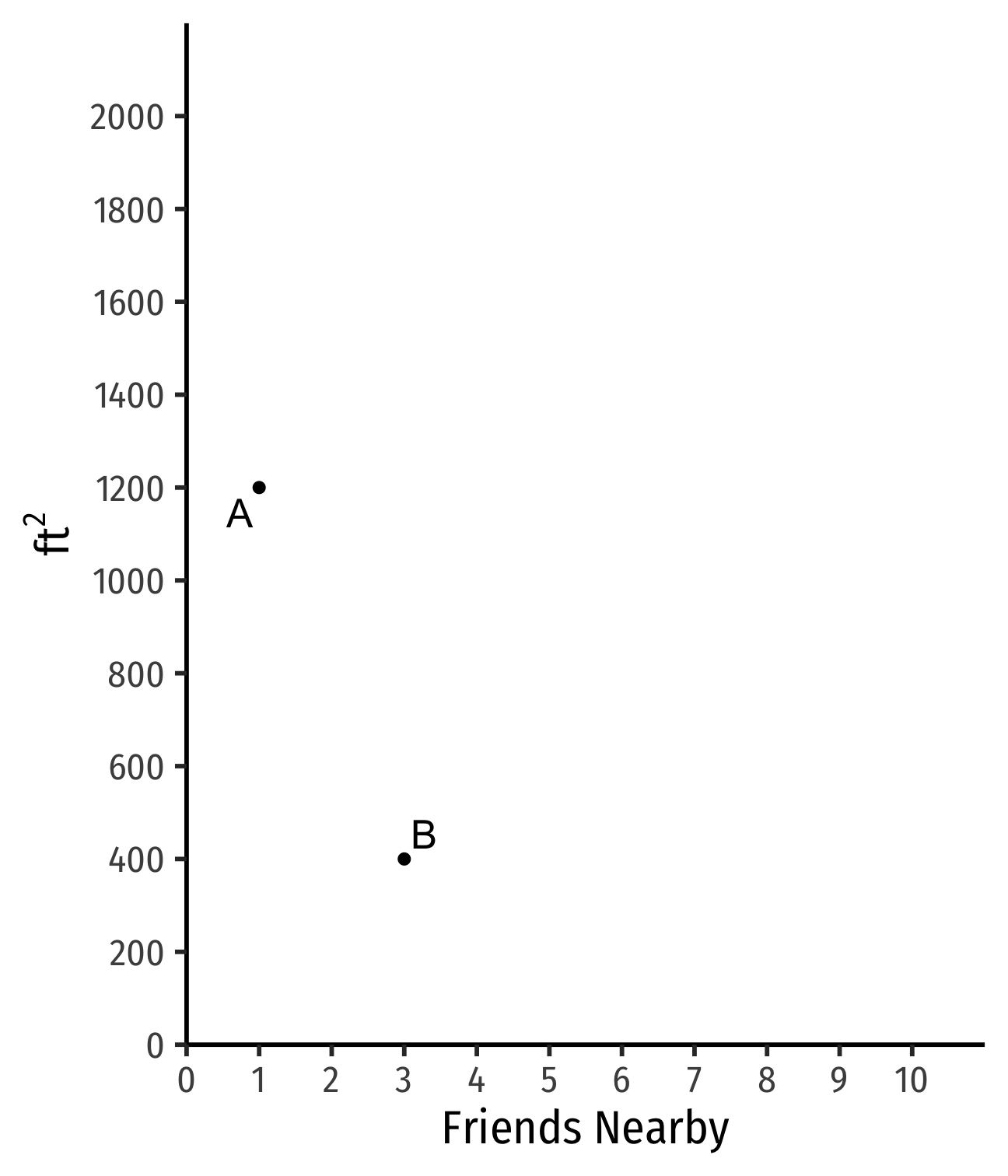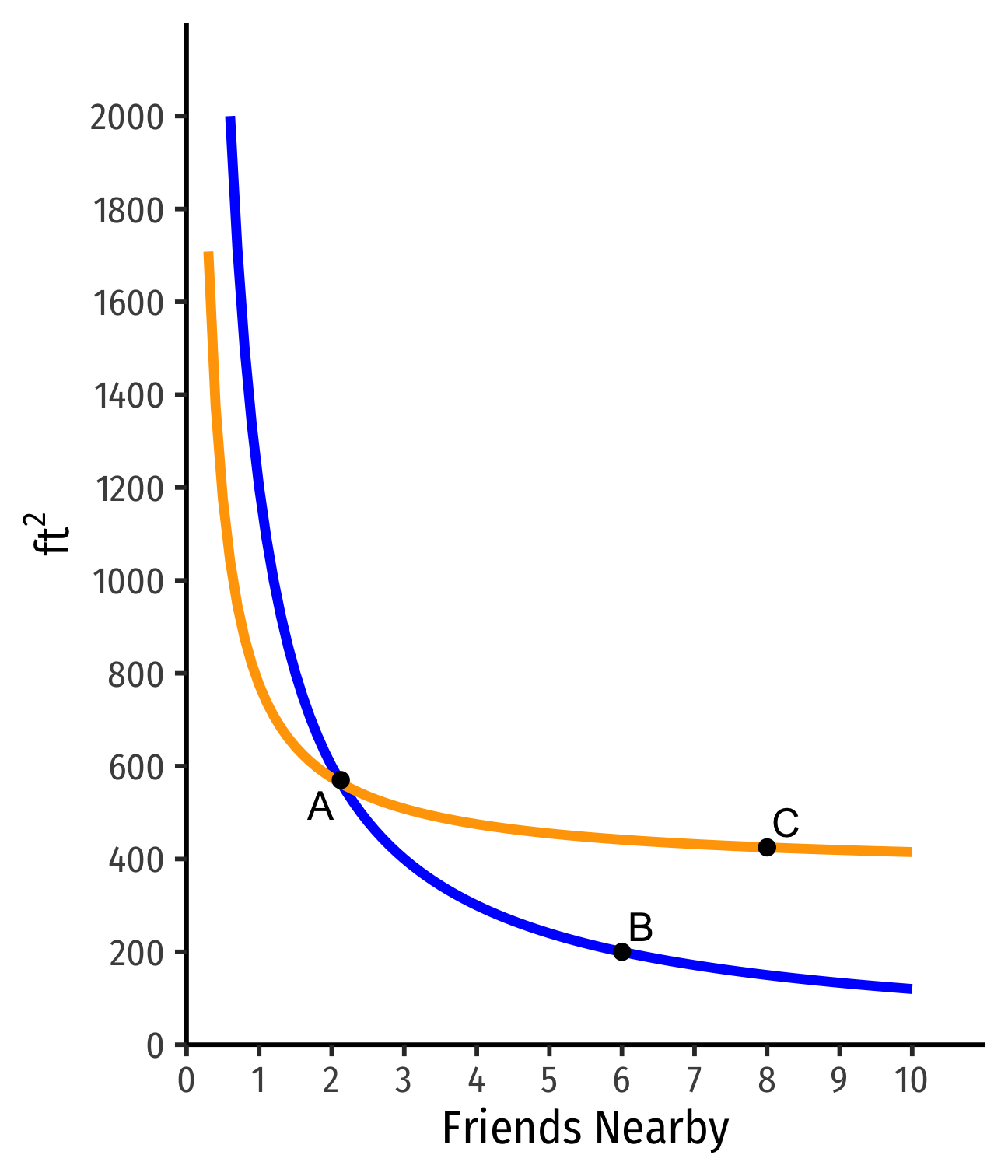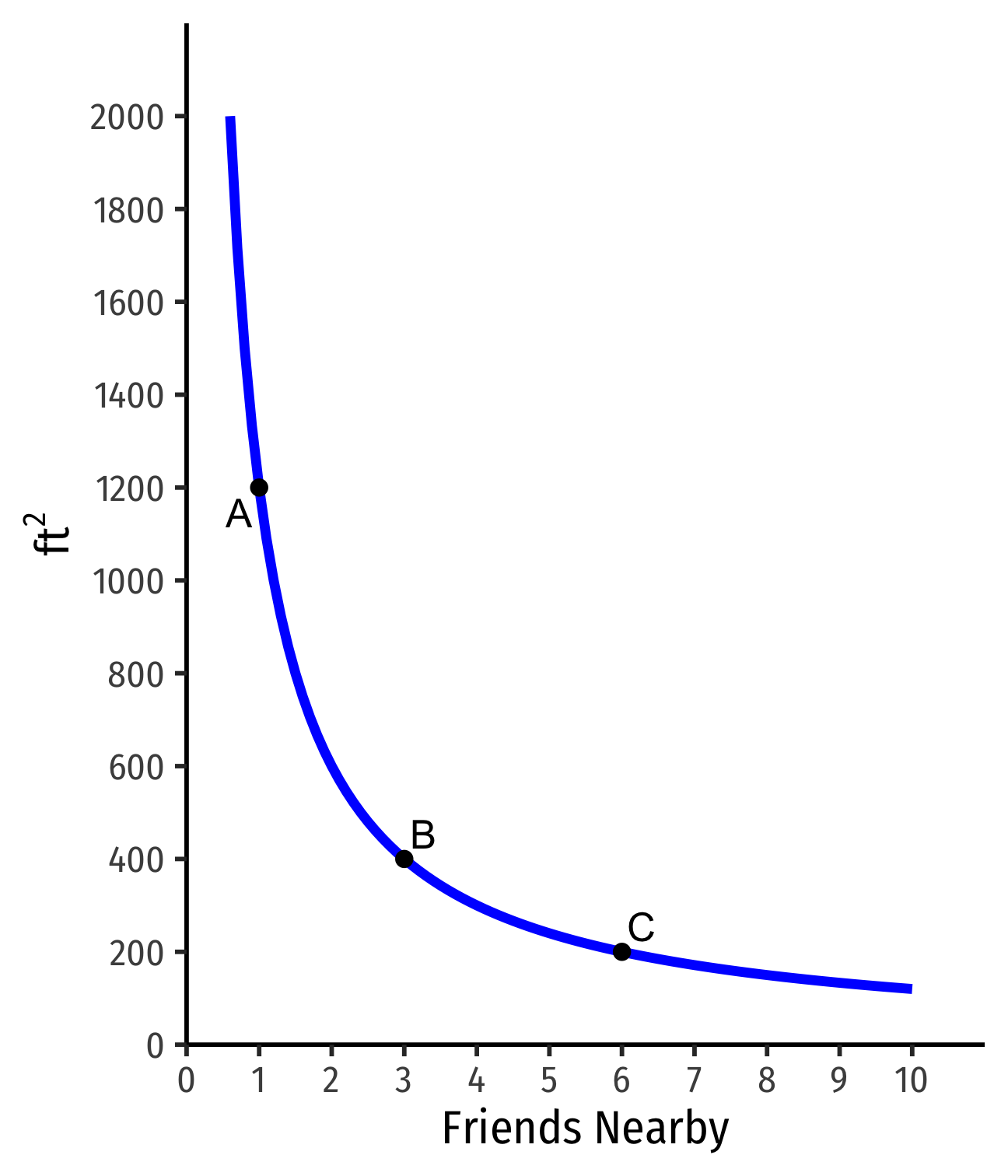If I find another apt with 1 fewer friend nearby, how many more ft2 would you need to keep you satisfied?