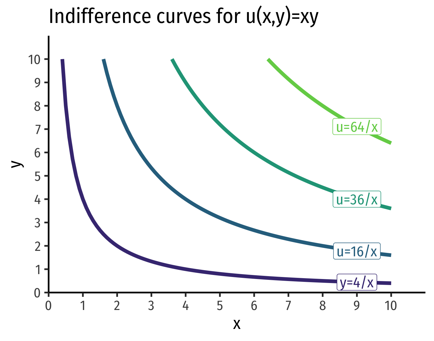 2-D Indifference Curve Contours: y=u2x