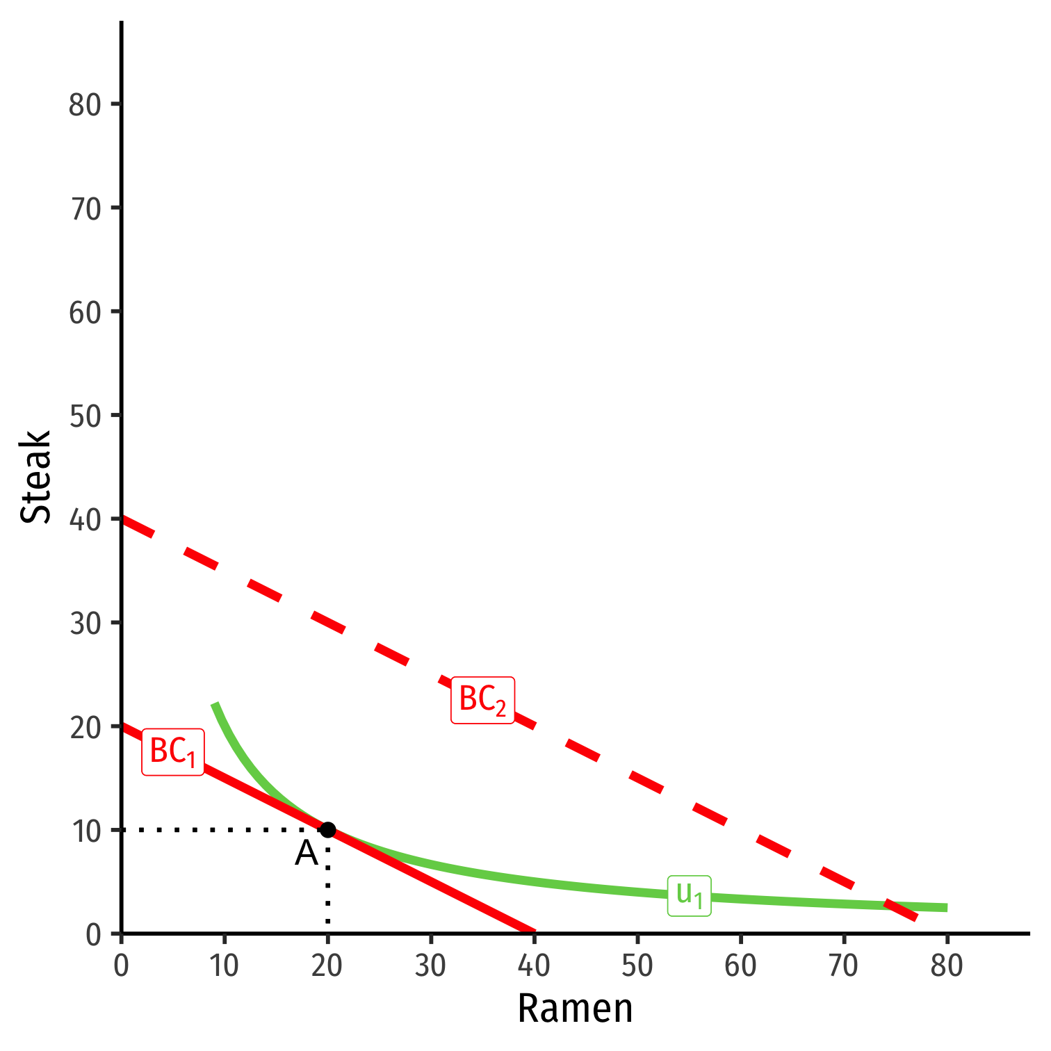 Steak is a normal good, ramen is an inferior good