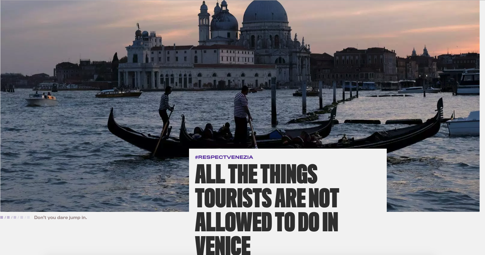 "Sitting is banned in the following places: "in St. Mark’s Square and in Piazzetta dei Leoncini, beneath the arcades and on the steps of the Procuratie Nuove, the Napoleonic Wing, the Sansovino Library, beneath the arcades of the Ducal Palace, in the impressive entranceway to St. Mark’s Square otherwise known as Piazzetta San Marco and its jetty." ($200)